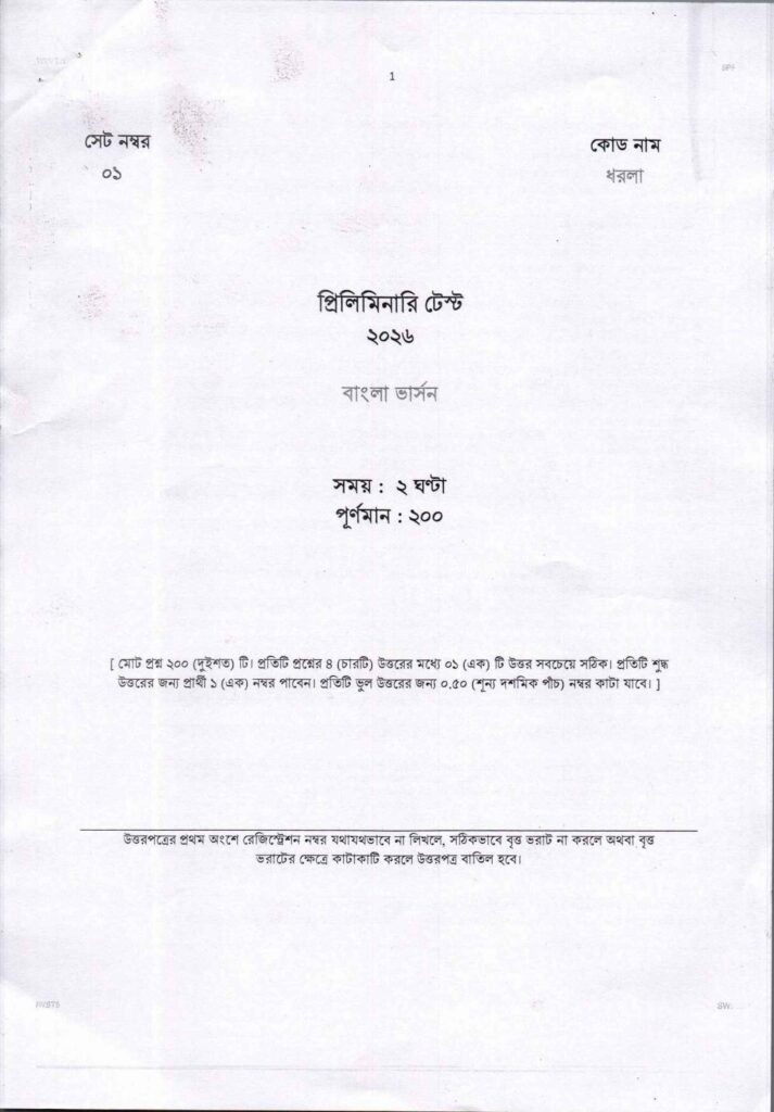 ৫০তম বিসিএস প্রিলিমিনারি প্রশ্ন
